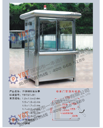 小區(qū)門口用建議使用不銹鋼崗?fù)?,這種崗?fù)た梢愿鶕?jù)需求來設(shè)計(jì)、定制外觀風(fēng)格,平面布局,內(nèi)部做好水電系統(tǒng)部分,其中墻體里面可以填充保溫隔音防火材料,而且這種崗?fù)さ恼w材料使用壽命長,美觀,安裝方便。
